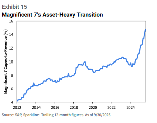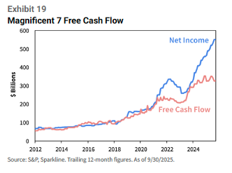 There is much to consider regarding the ultimate return on capital from AI investments for the Magnificent 7, especially given the radical shift in their business models towards far more asset-heavy structures. Even so, their dominance and profitability are likely to remain strong in the interim, which may be enough to support current prices.